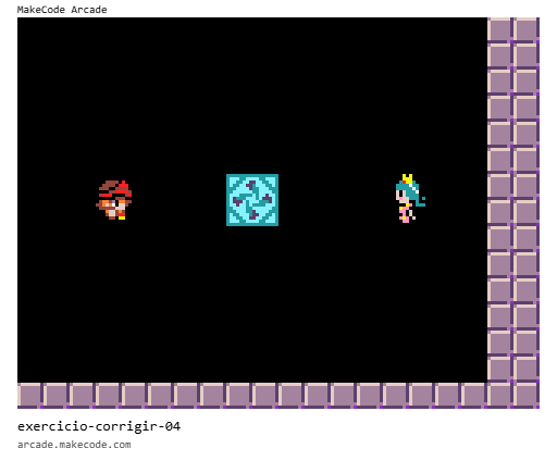 Corrija o código para que, ao pressionar o botão A a princesa diga “Olá!” apenas se o cavaleiro tiver passado da metade da tela.