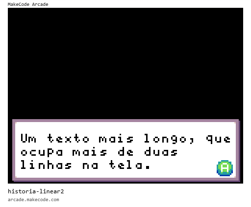 game.show_long_text("Um texto mais longo, que ocupa mais de duas linhas na tela.", DialogLayout.BOTTOM)